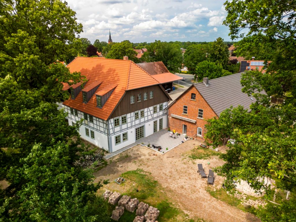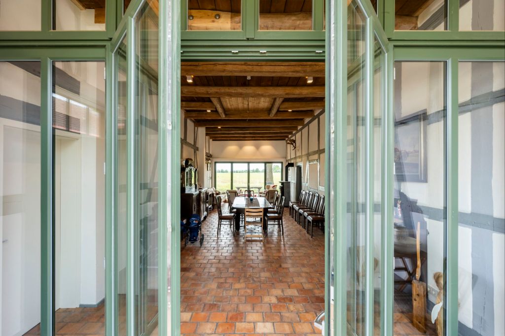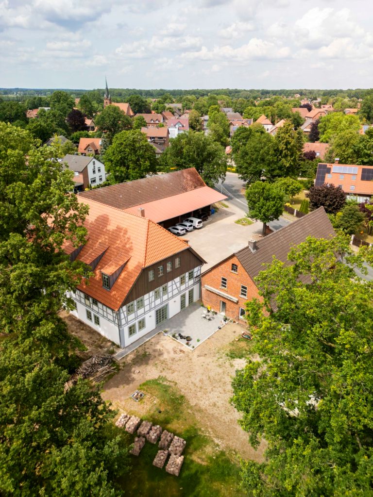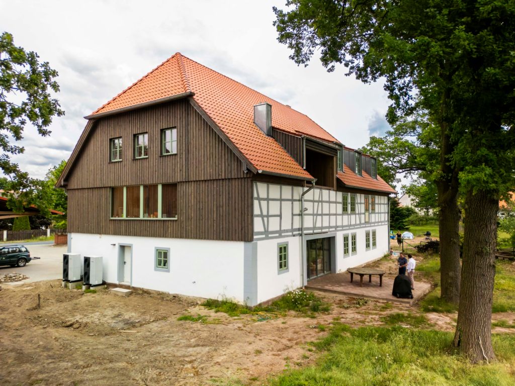 Das Haus K liegt in einem Dorf nördlich von Braunschweig. Der 1863 erbaute Dreiseithof stand jahrelang leer und sein Erhält war fraglich. Zwar hatte er eine gute Bausubstanz, aber im Inneren wurden viele Teile unsachgemäß saniert.