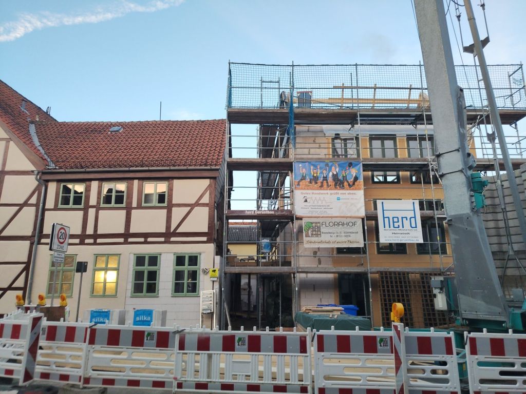 Im 1. Quartal 2026 folgt das der neue Dachstuhl des Altbaus, die Dacheindeckung und die Fassade. Damit werden die Arbeiten nach außen in den nächsten Monaten fertiggestellt.